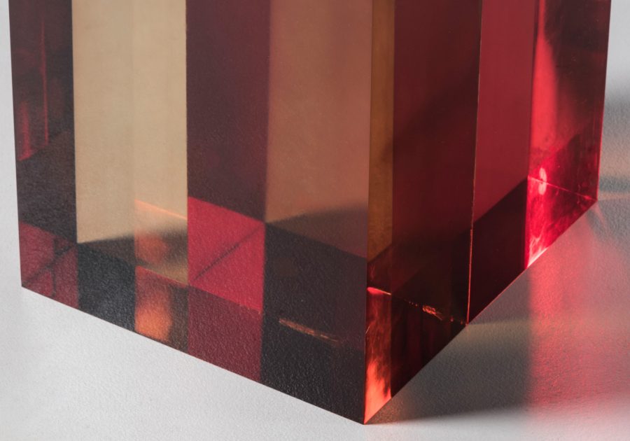 Each parallelepiped is coloured using an innovative technique that creates a visual experience of high power.