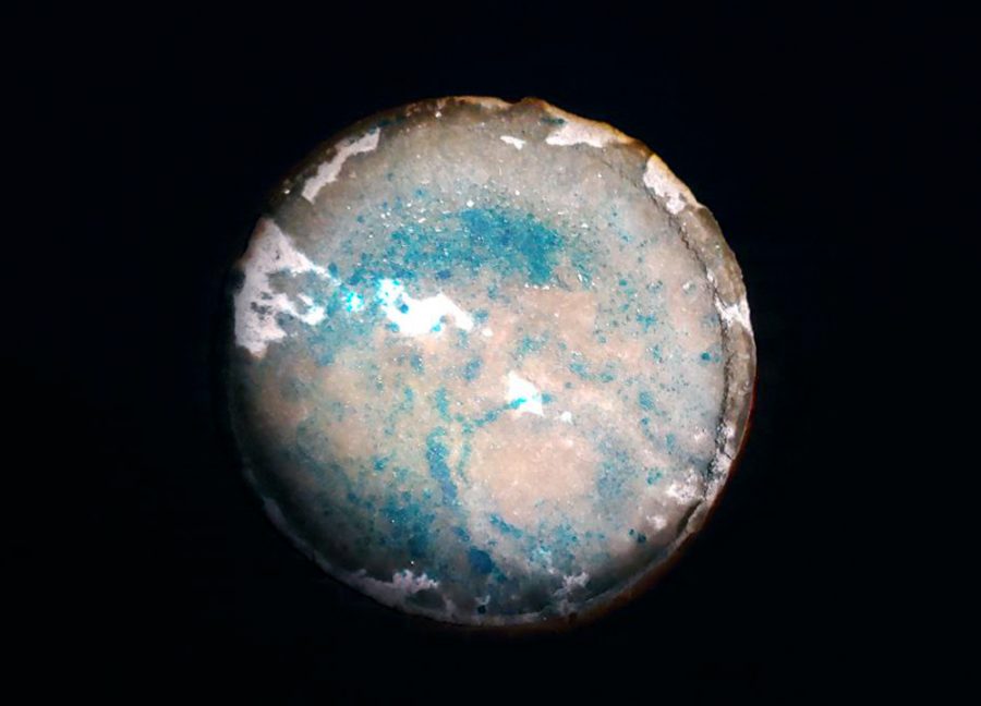 The Potash Alum is well known since AD77 (Pliny the Helder was quoted in Natural History on the 52nd chapter of his 35th book). Its natural shape becomes memory, fossilized by resin, which is used in various forms representing different timeframes of the making-of process. Like a stratigraphy, the artwork collects and conncects more times at once.