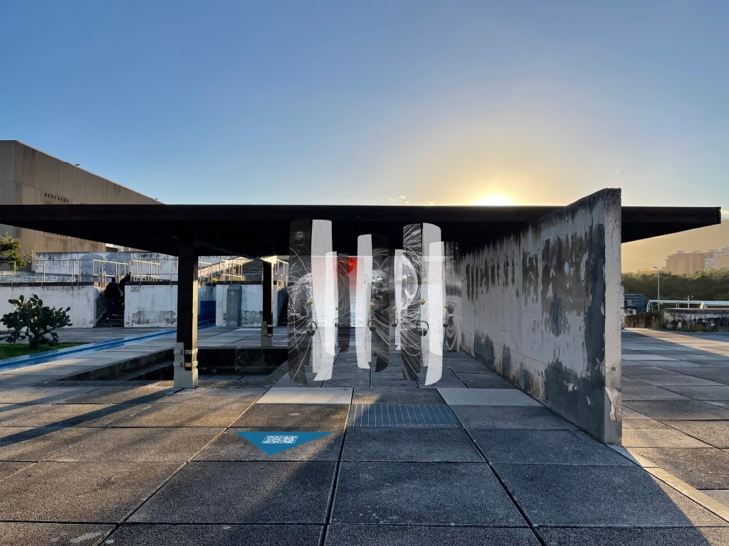Air, as an element essential to life, has always been consumed and transformed by human action. In this exhibition, we want to emphasize the human ability to sublimate it when processed and shaped into the forms of sound. The characteristic of linearity inherent in the space of air is amplified and re-signified through a path that the viewer takes through it, which is why it is called THE WAY OF THE AIR. The linearity of the space is cadenced by the presence of light truss canopies that are identified as essential elements to the act of installation that operates through suspension.