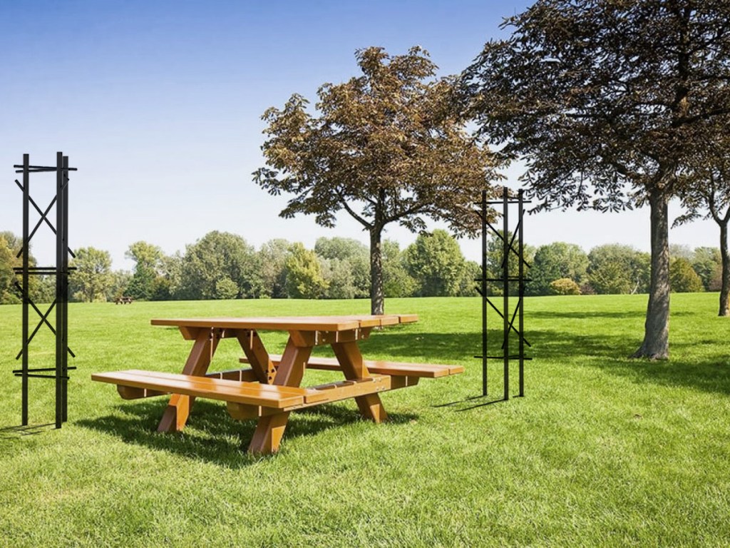 The design of the elements is based on a module established according to the criteria of minimal material consumption, as well as minimal visual clutter, sufficient for the objects to perform their proper functions and to support the plants. The hardware used for connections between the transverse and vertical elements is minimal, minute and suitable for the outdoor context.