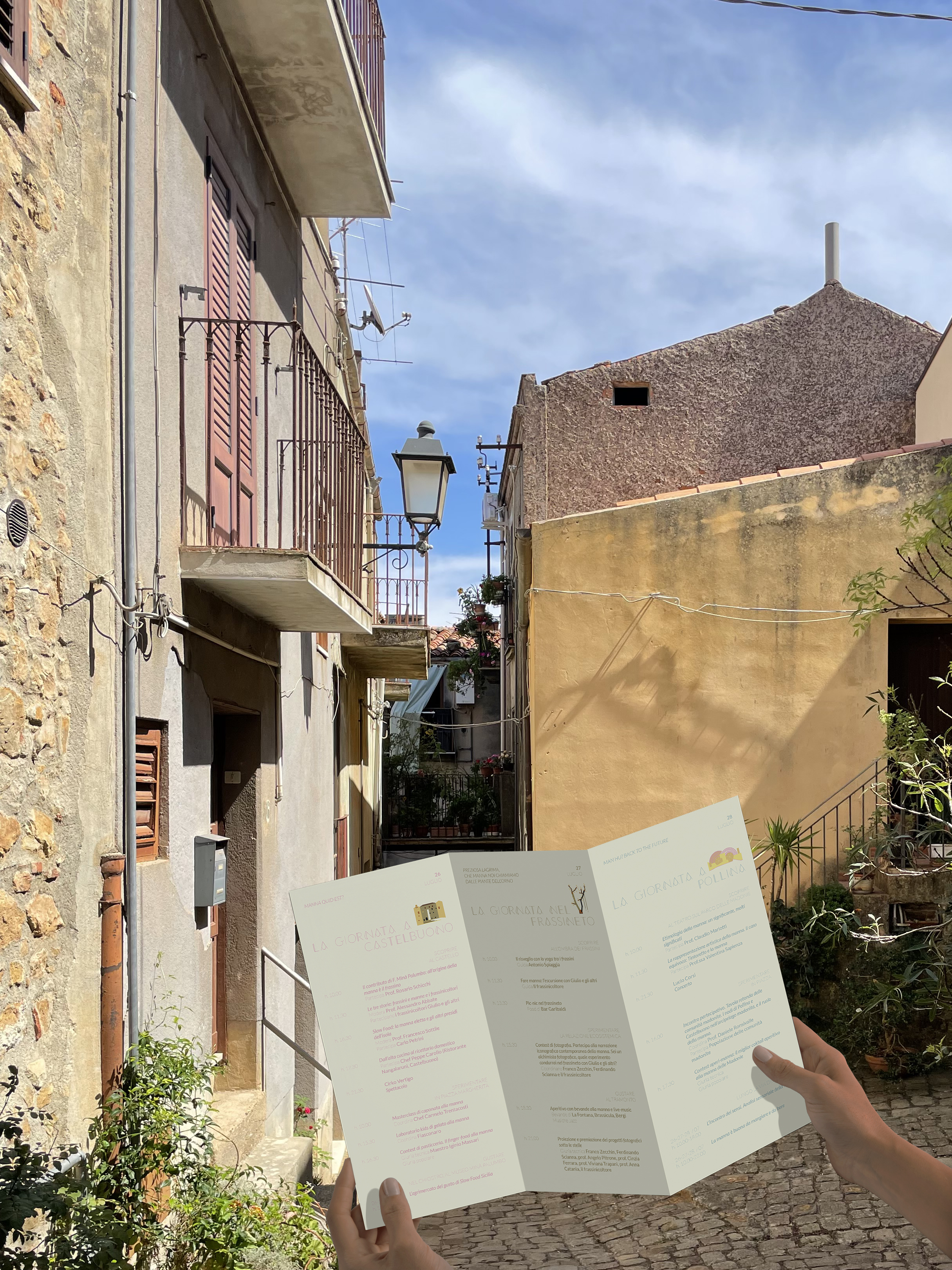 The contribution of this thesis aims to give back to the area, ash farmers, interested parties, explorers, and tourists a moltitude of experiences, in order to enhance and promote the territory of Pollina and Castelbuono, and its communities, since manna, as a representative product of a territory, is the key element within the developement and growth of the system ash trees – ash grower – territory, in a glocal scale.